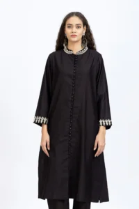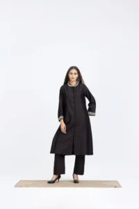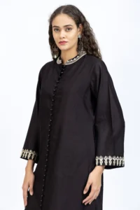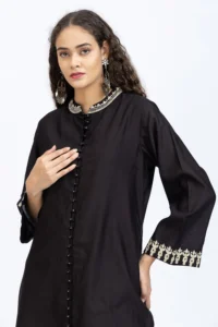 Product Name : Black chanderi embroidered kurta paired with chanderi pants