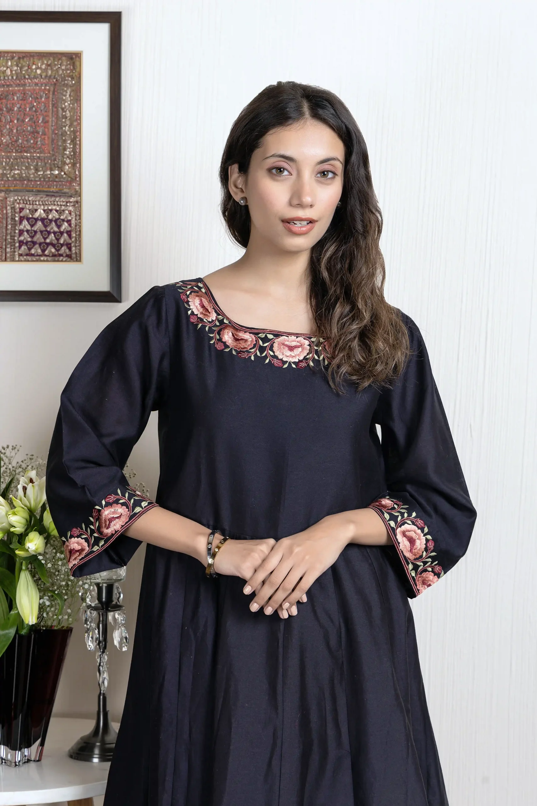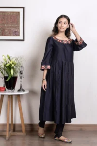 Product Name : Chanderi embroidered anarkali kurta paired with Chanderi churidar