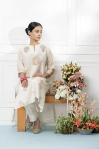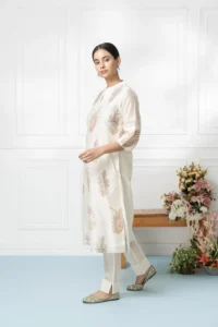 Product Name : Chanderi hand block printed long kurta paired with cotton pants