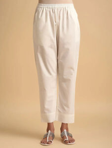 PURPLE CHANDERI ELASTIC WAIST STRAIGHT PANTS