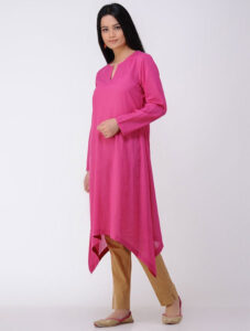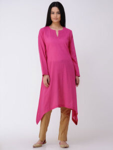Fuschia Cotton Kurta With Assymetrical Bottom