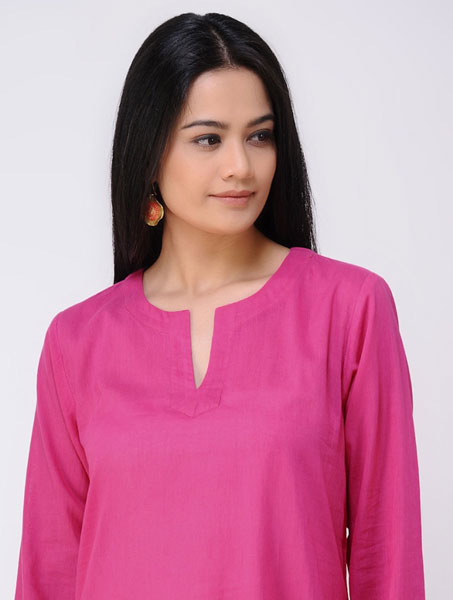 Home Kurta Fuschia Cotton Kurta With Assymetrical Bottom
