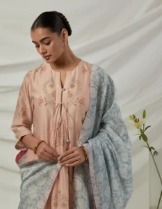 Product Name : Hand block printed chanderi kurta paired with chanderi pants