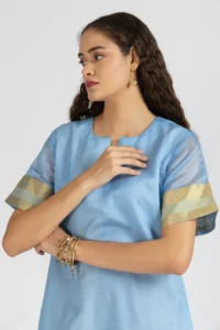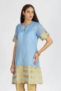 Product Name : Handwoven Chanderi short kurta with jacquard trims