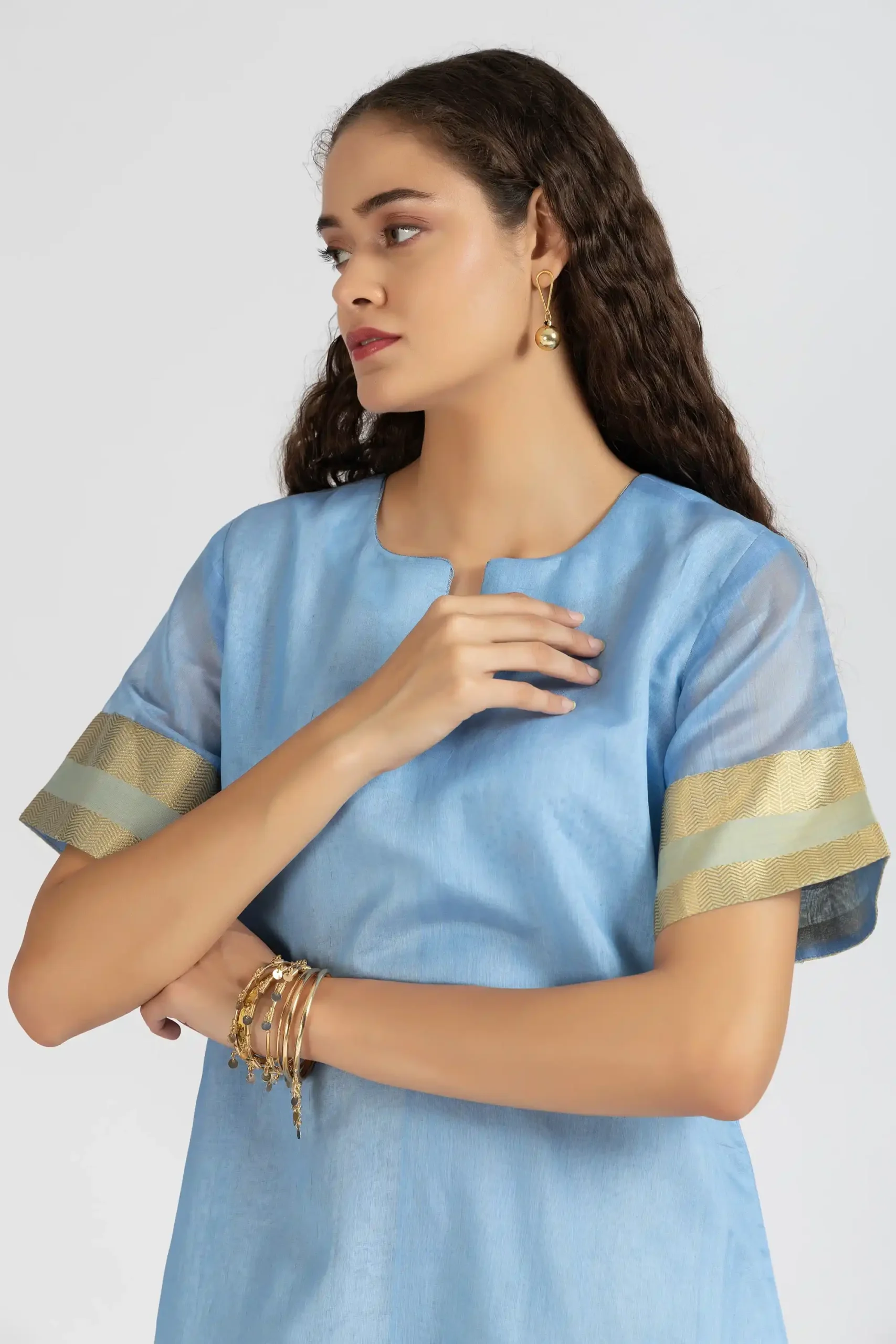 Home Kurta Handwoven Chanderi short kurta with jacquard trims