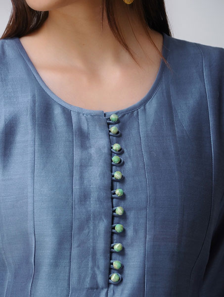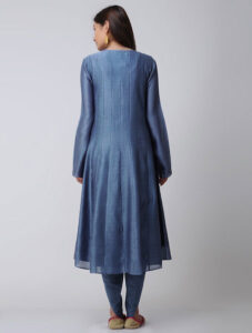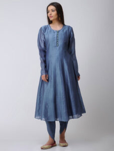Indigo Anarkali Chanderi Kurta With Polti Buttons