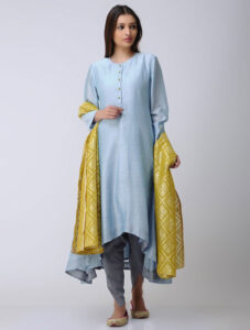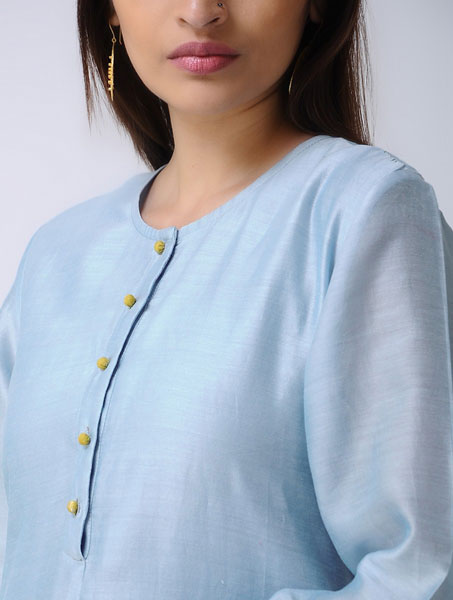 Home Kurta Light Blue Chanderi Kali Assymetrical Kurta With Potli Buttons