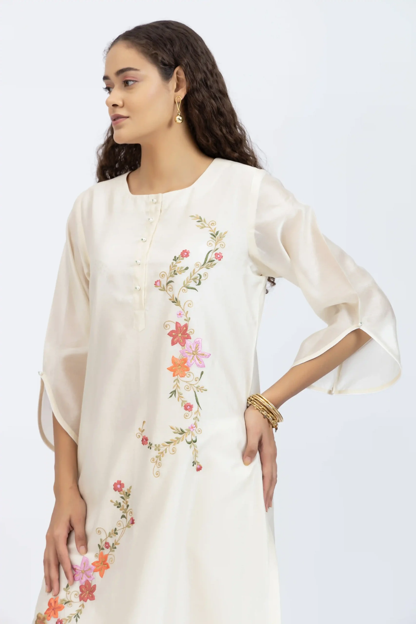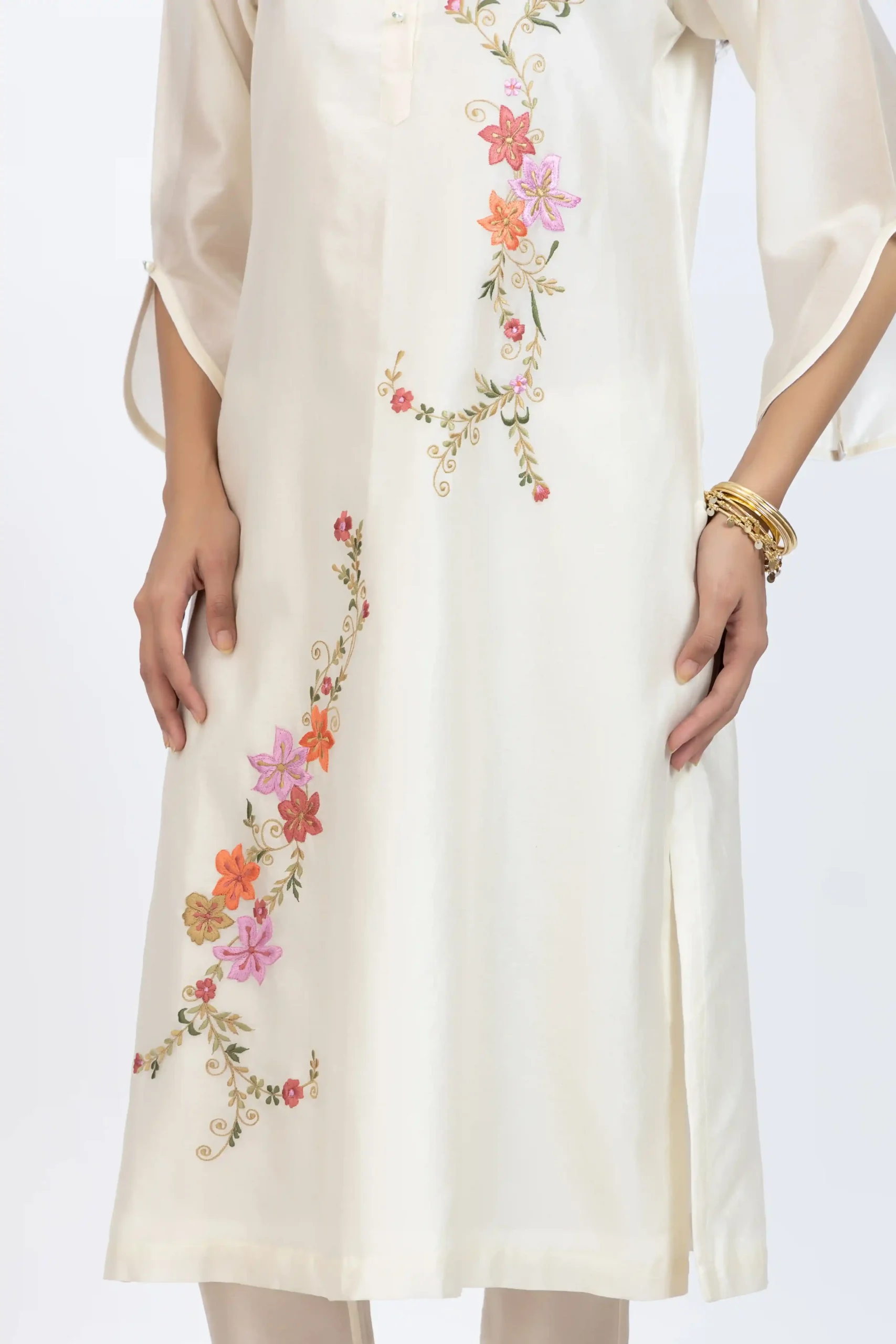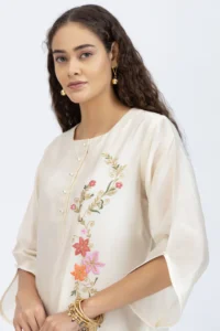 Product Name : Off white floral embroidered kurta