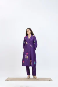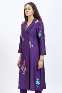 Home Kurta Purple chanderi embroidered jacket