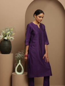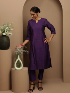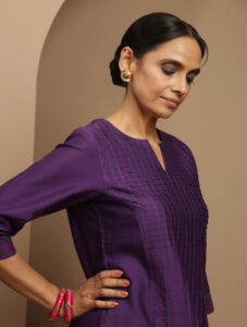 PURPLE CHANDERI THREADWORK AND PINTUCK DETAILED KURTA