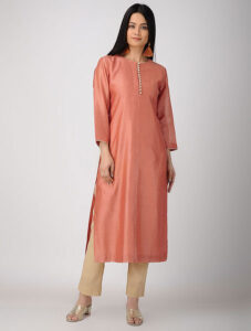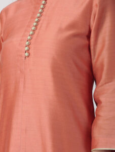 Tangerine Chanderi Kurta with Potli Buttons