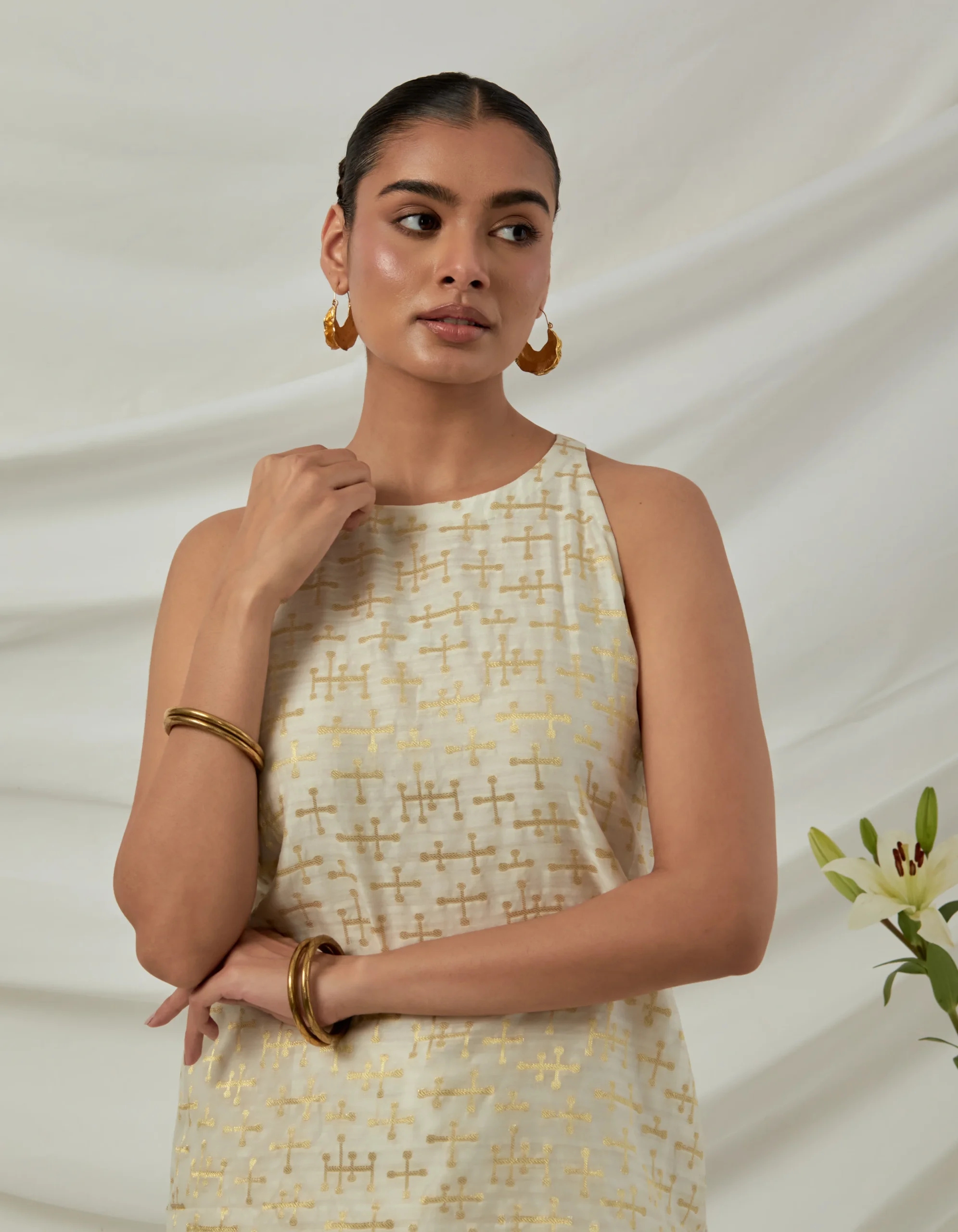 OFF WHITE CHANDERI EMBROIDERED DRESS