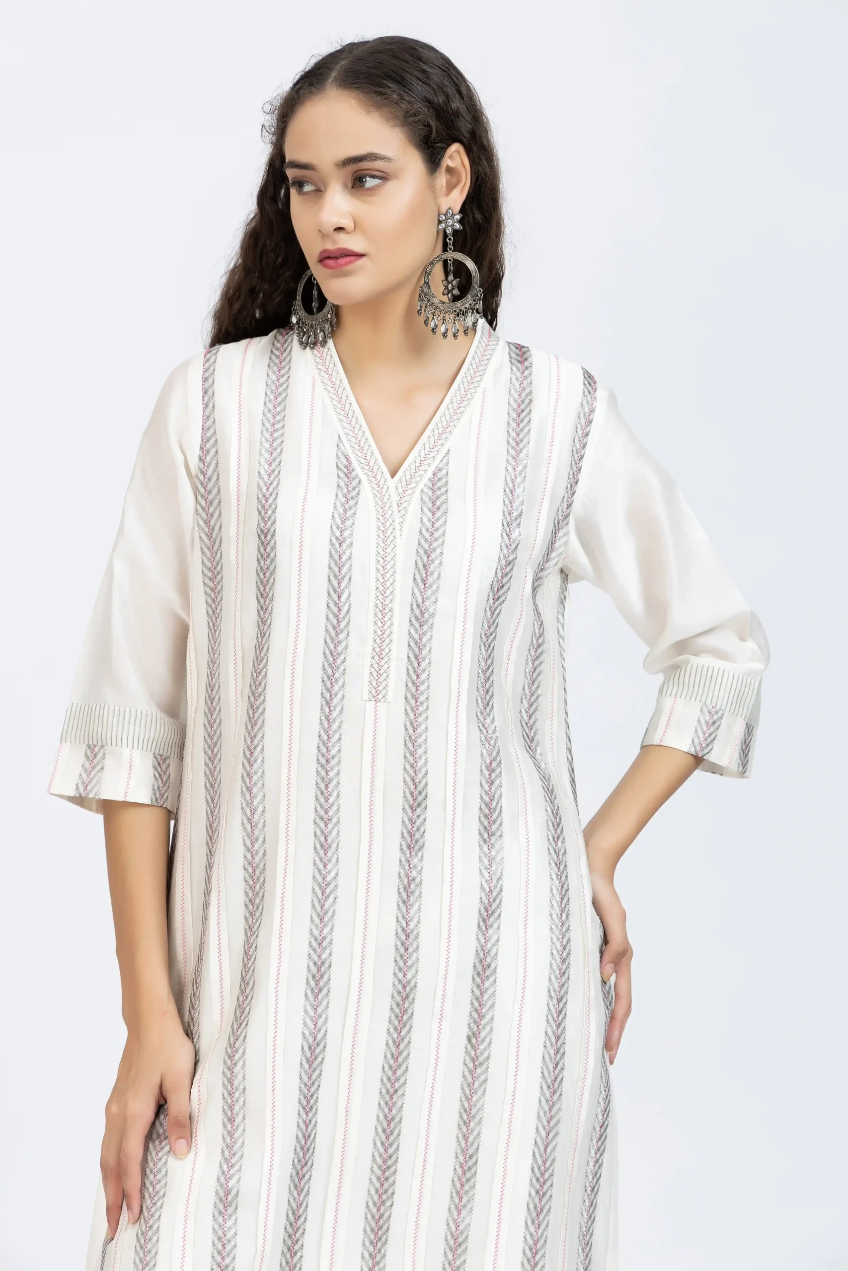 Chanderi Long Top with Handwoven Cotton Chanderi Stripes