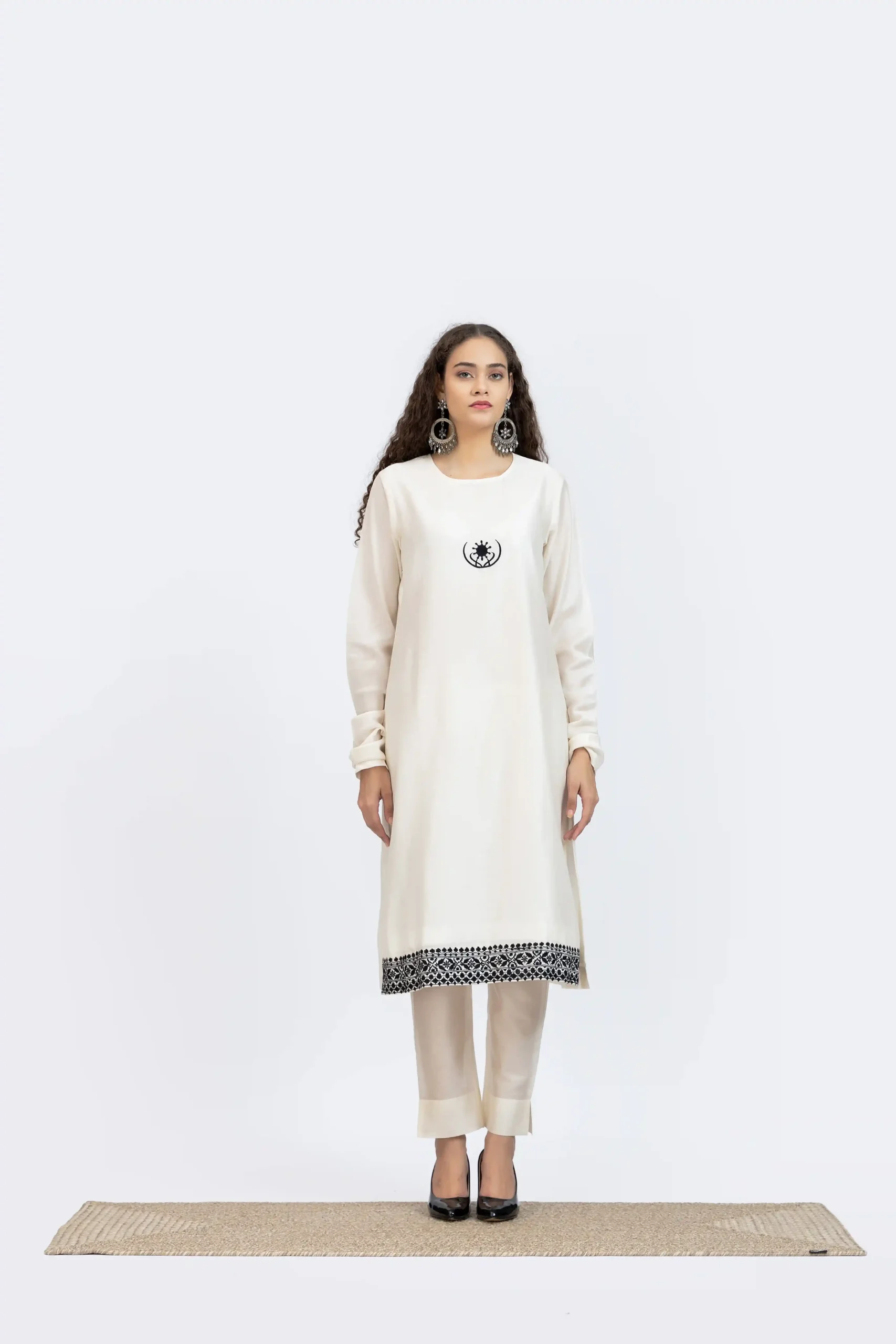 Off white chanderi embroidered kurta paired with chanderi pants