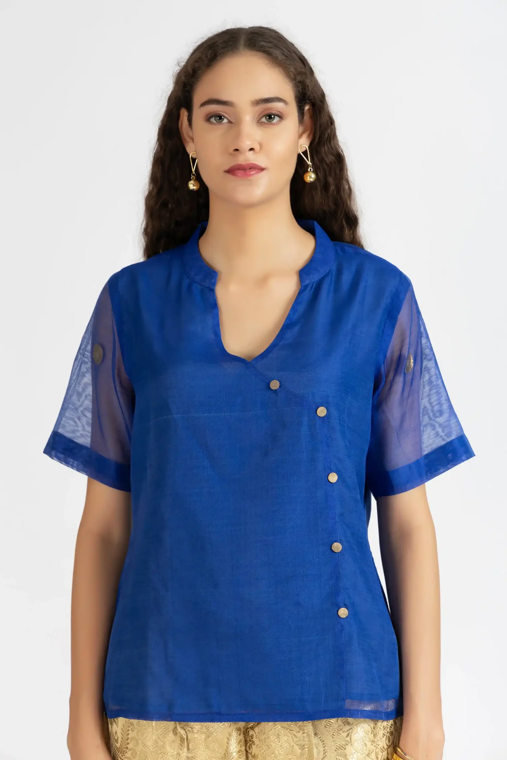 Navy blue handwoven chanderi short top