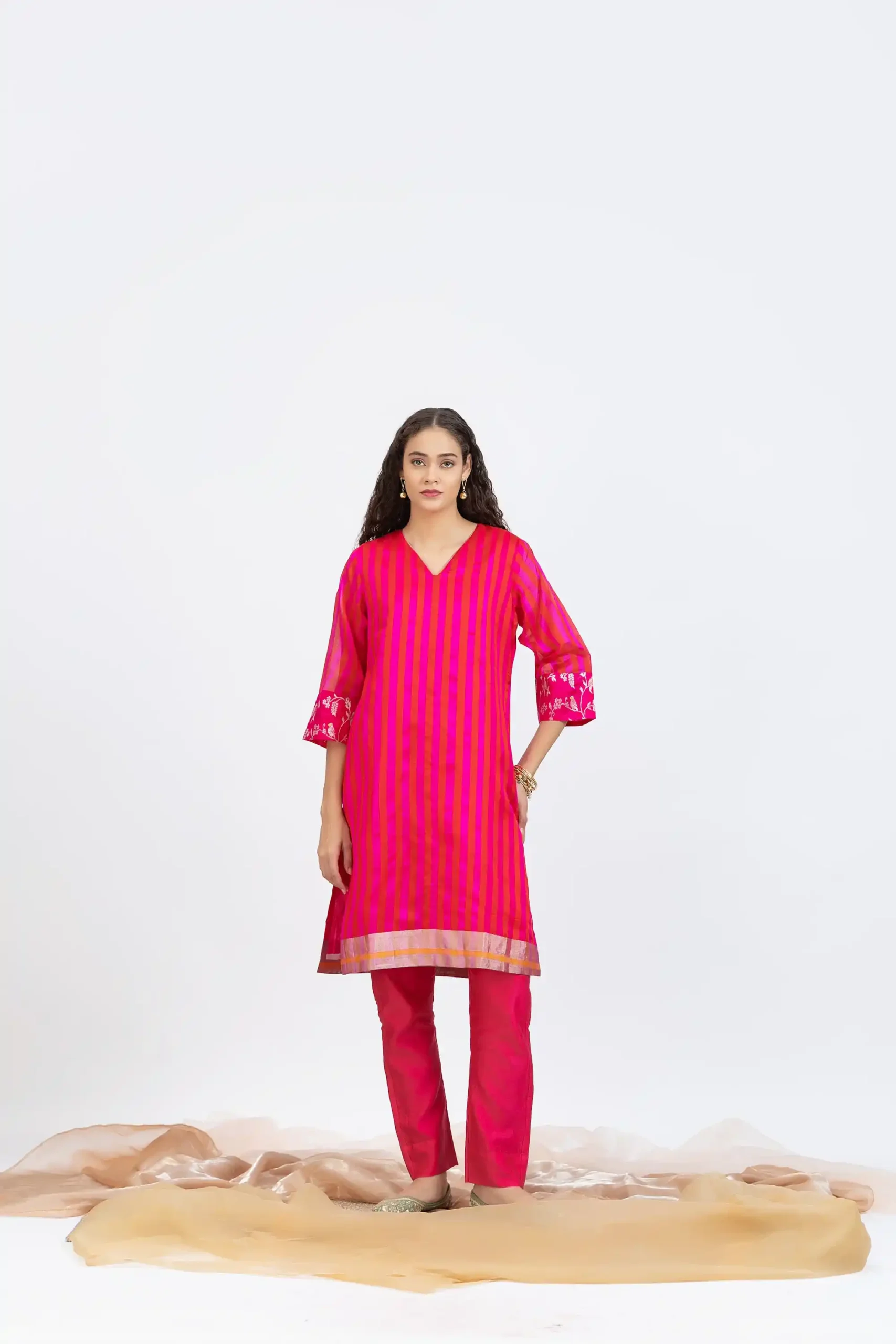 Hand woven chanderi jacquard with hand embroidered kurta
