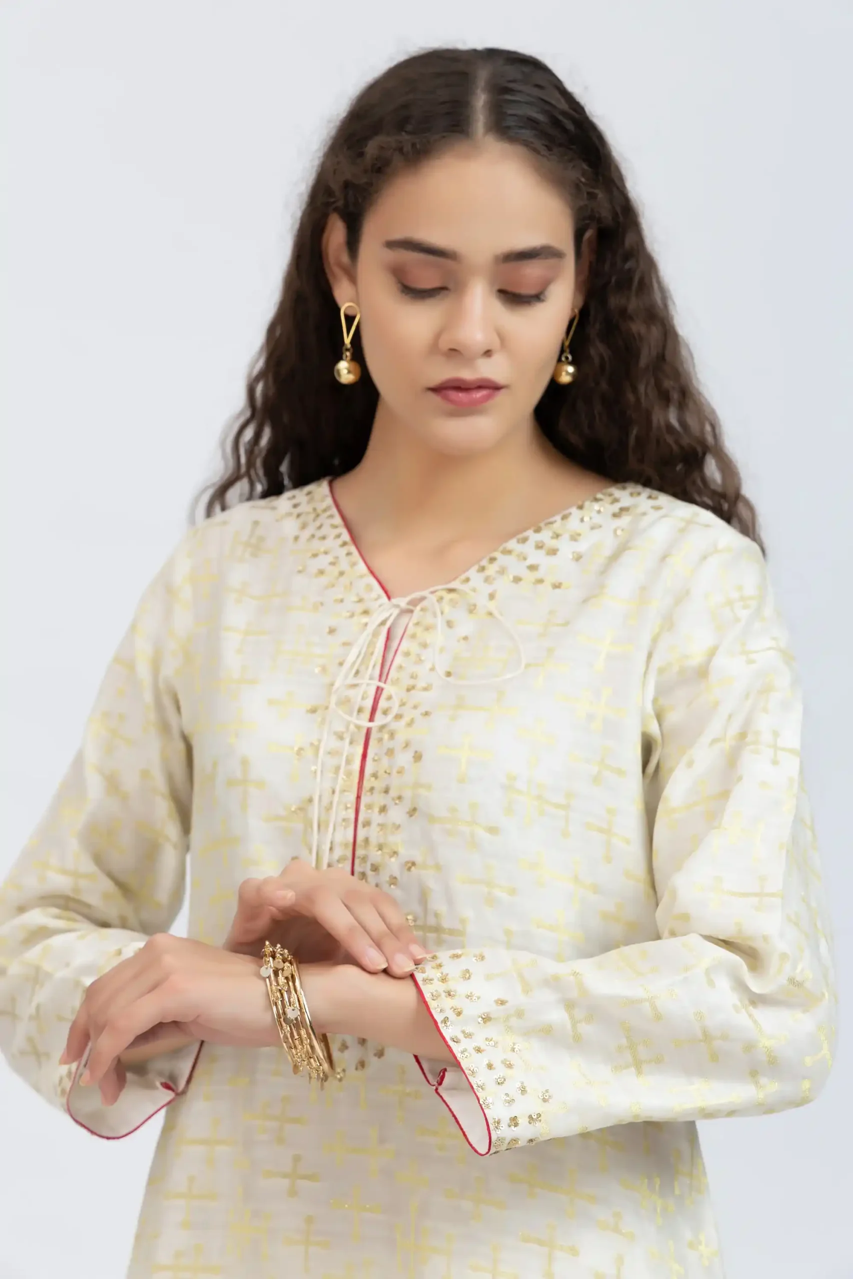 Off white chanderi kurta with embroidered sleeves