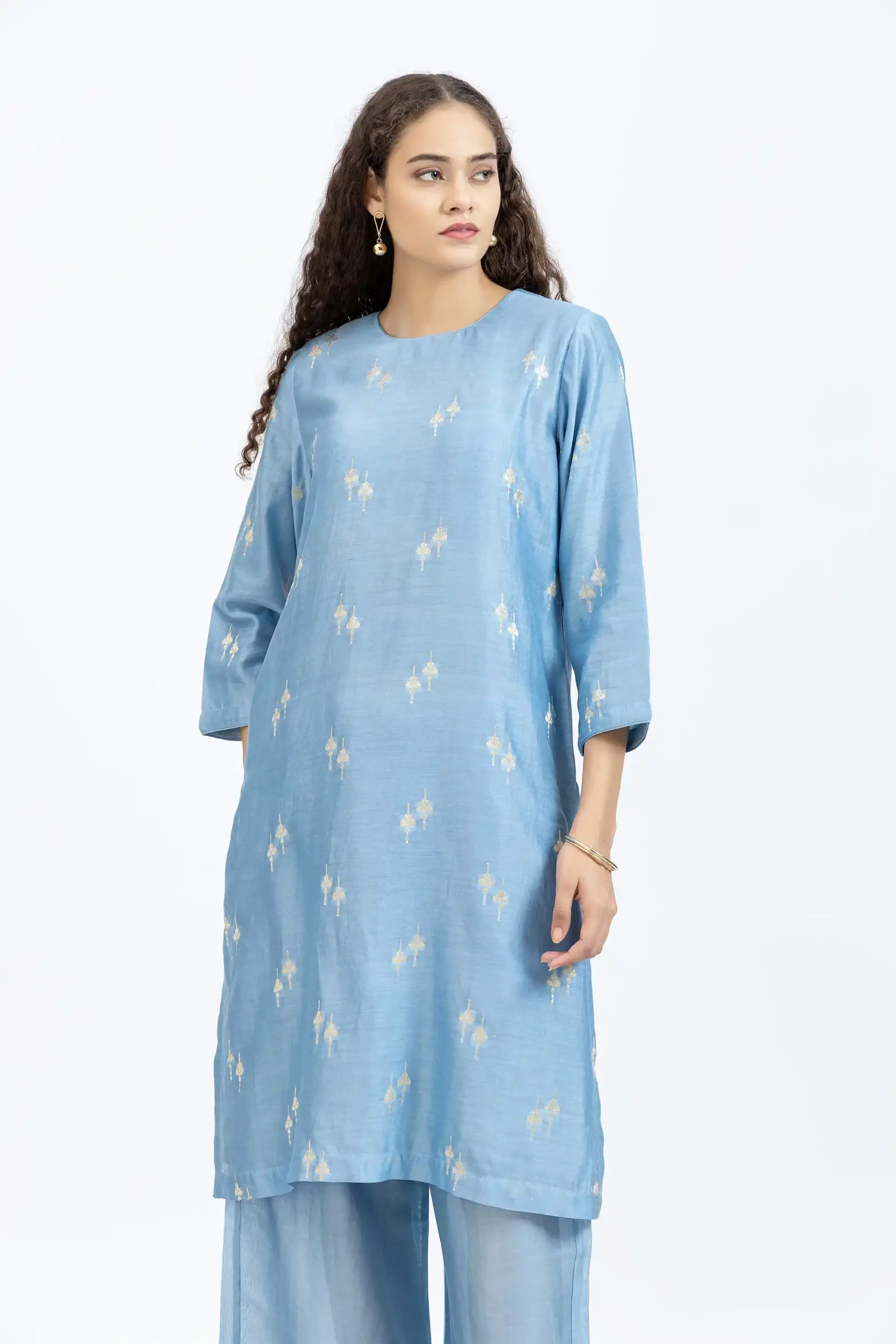 Light Blue Chanderi Kurta with Stitch Details